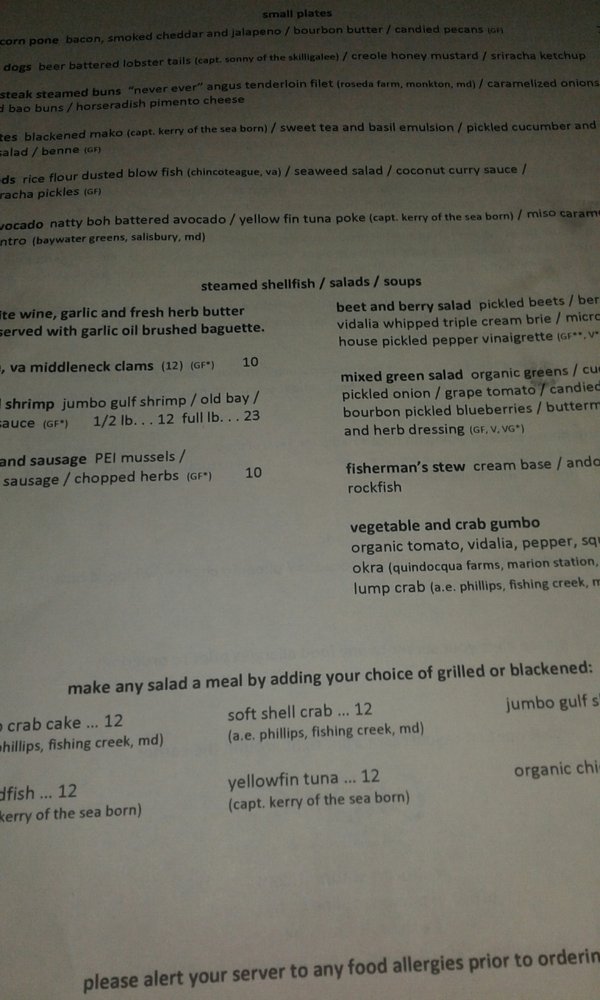 lump crab imperial (a.e. phillips, hoopers island, md) / pimento goat cheese (firefly farms, accident, md) / micro greens (baywater greens, salisbury, md)